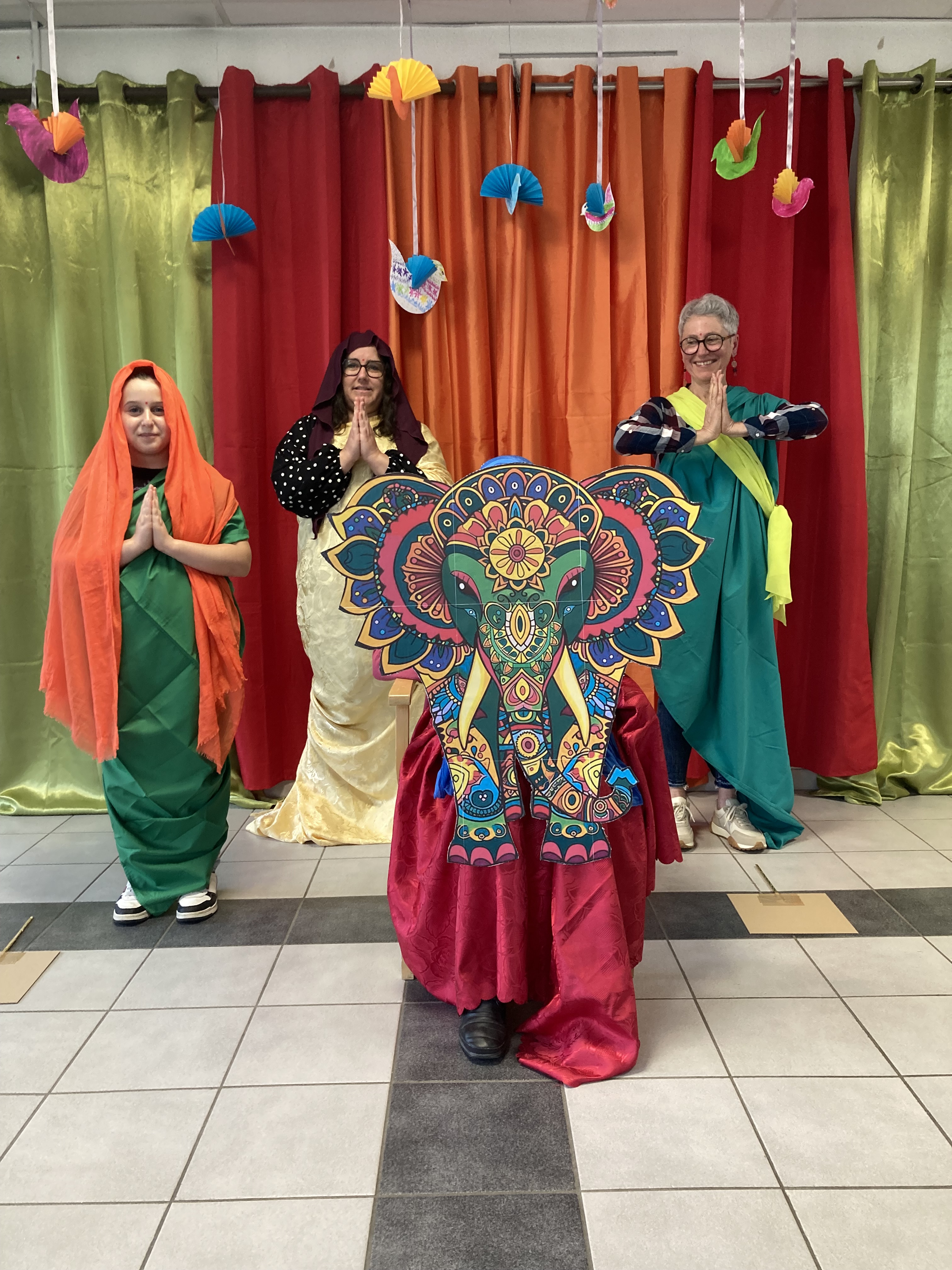 En poste depuis 4 ans et toujours à la recherche de nouvelles idées participatives, il n’en faudra pas plus à Josette Ribes, pour saisir l’occasion d’inscrire son établissement au concours. Le choix du thème se portera sur Bollywood, où le cinéma se caractérise par ses comédies musicales un peu kitsch, ultra colorées, sur fond d’histoire d’amour contrariée par l’entourage, confrontant l’Inde traditionnelle et l’Inde moderne. Roméo et Juliette version Maharashtra en quelque sorte.